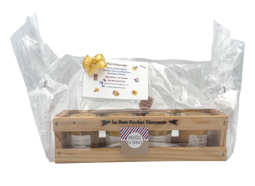 Découvrez l'Assortiment de miels d'Auvergne, un coffret dégustation de 4 pots qui ravira vos papilles.