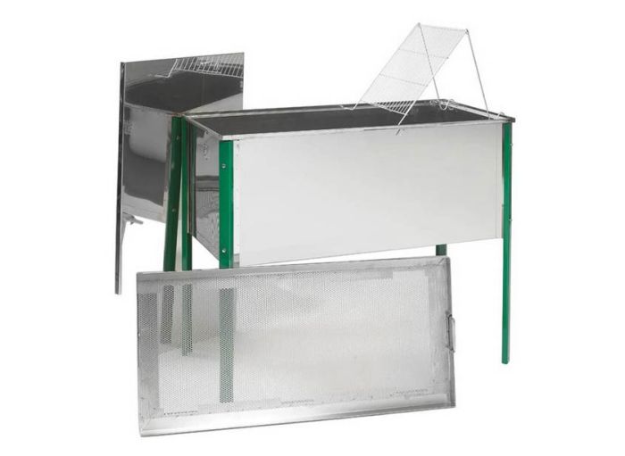 Le Bac à désoperculer SAF en acier inox 18/10 possède une grille de filtrage et un couvercle en acier inox. Il est également doté d'un robinet en plastique et jambes démontables vernies. Le bac à désoperculer vous permet de récupérer à la fois le miel de la découpe de la cire d'opercule et la cire d’opercule.