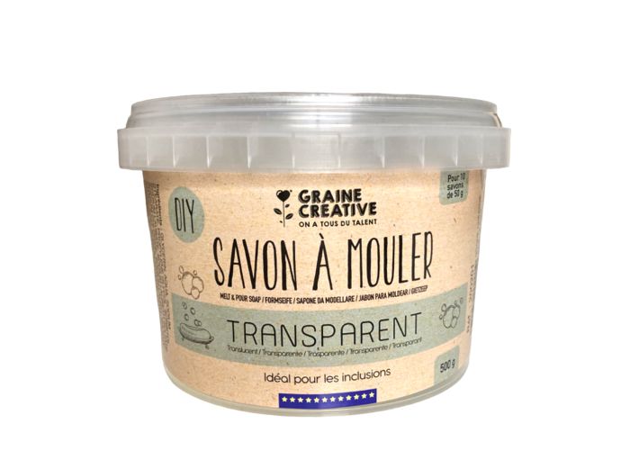 Un pot de 500 G de base de savon transparente, pour les amateurs de DIY qui souhaitent fabriquer en toute facilité leur savon fait maison.