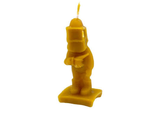 Cette bougie en cire d’abeille naturelle, prends la forme d’un apiculteur.