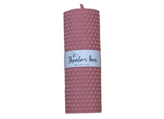 De couleur rose pâle et à l’aspect de petites alvéoles, cette bougie rappelle aux passionnés, les éléments incontournables de la ruche.