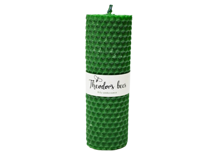 Cette bougie décorative à la cire d’abeille ravivera vos intérieurs ! Essentiellement composée de cire d’abeille, cette bougie naturelle, couleur vert forêt et de forme cylindrique, contient de petites alvéoles décoratives.