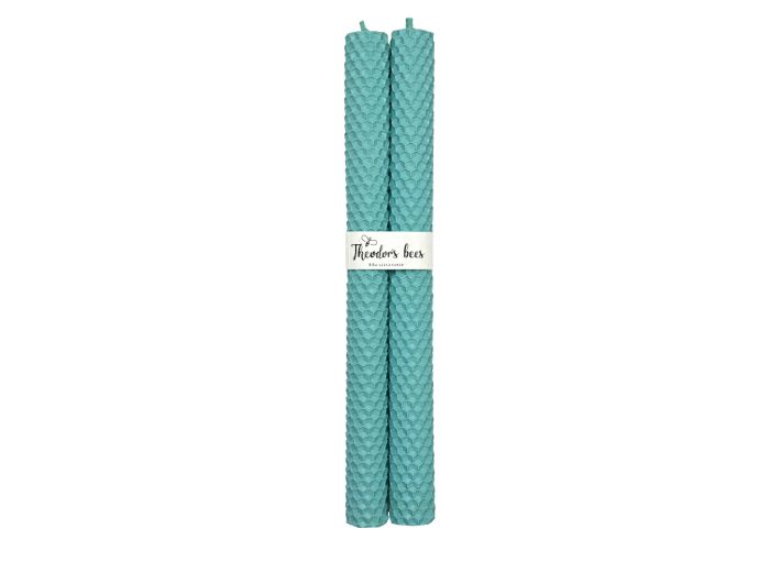 Bougie "de table" en cire d'abeille Bleu Azur, le lot de 2