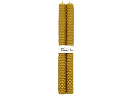 Ce lot de 2 bougies teintées de couleur or par colorant alimentaire, délivrera un parfum naturel de cire d’abeille lors de vos repas !
