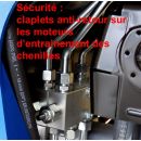 – Les chenilles sont montées sur tendeurs automatiques à ressort avec limiteur de compression, l’intérêt est que, lorsque l’engin passe sur une pierre, les chenilles se rétractent entre les galets, cela permet à l’engin d’épouser les accidents de terrain et de limiter considérablement le cabrage.