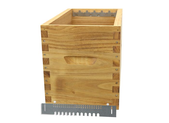 Corps de ruchette Greenbee au format Dadant 6, en bois de Paulownia extra-light, équipé de crémaillères pour 6 cadres droits, et du système exclusif pour entrée Clic&Lock, développé par Naturapi.