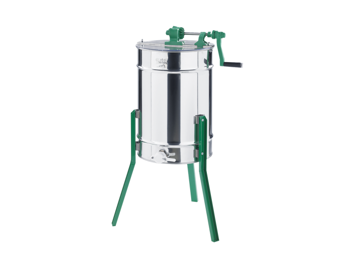 Extracteur en acier inox alimentaire avec fond conique pour une meilleure évacuation du miel. Couvercles en plastique transparent et robinet plastique d.40 mm sur manchon inox. Extracteur idéal jusqu'à 5 ruches Dadant.