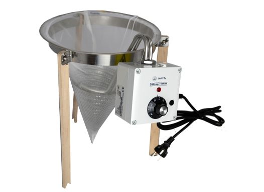 Ce filtre chauffant vous permet de liquéfier et filtrer un miel froid ou cristallisé. Grâce au thermostat intégré, vous pouvez régler la température facilement. Un détecteur de chaleur vous assure un miel pas trop chauffé.
