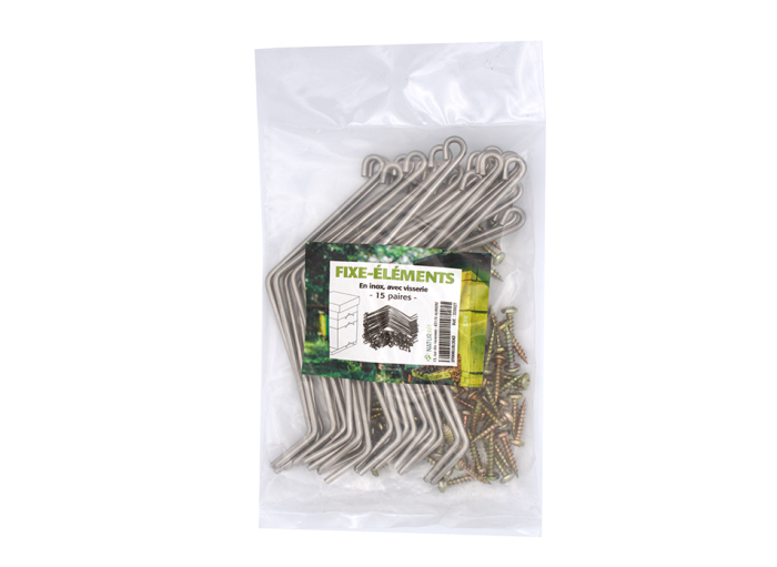 Fixe-éléments inox avec visserie, LE SACHET DE 15 PAIRES