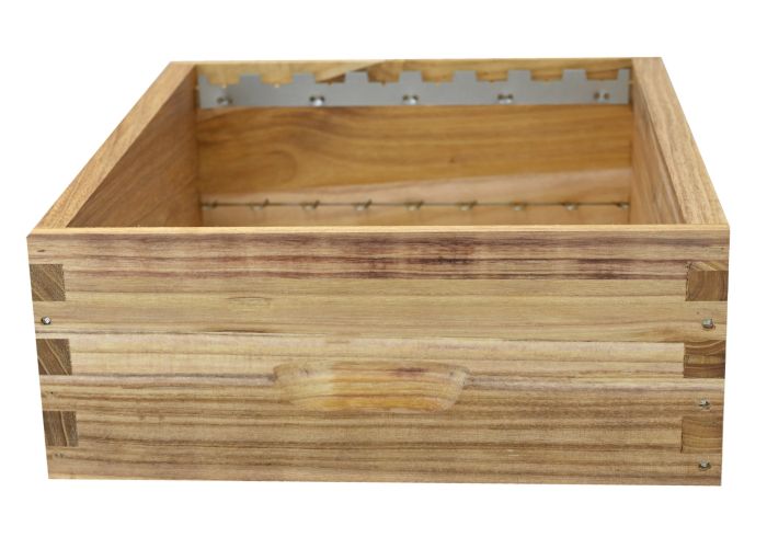 Hausse de ruche Greenbee au format Dadant 10, en bois de Paulownia extra-light, équipée de crémaillères pour 8 cadres droits.