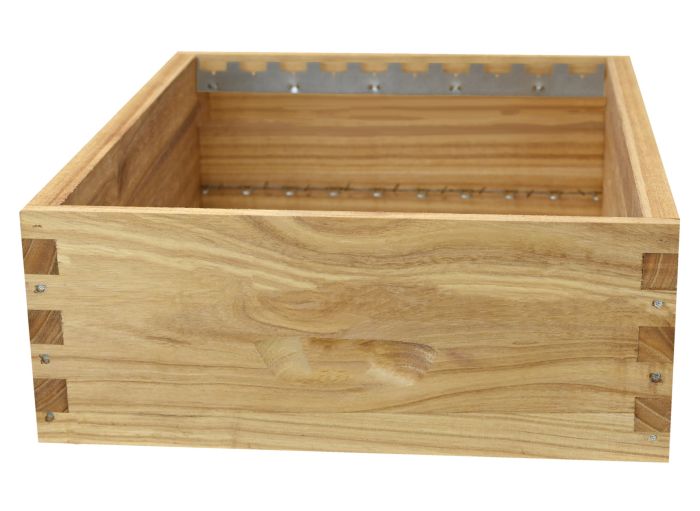 Hausse de ruche Greenbee au format Dadant 10, en bois de Paulownia extra-light, équipée de crémaillères pour 10 cadres droits.