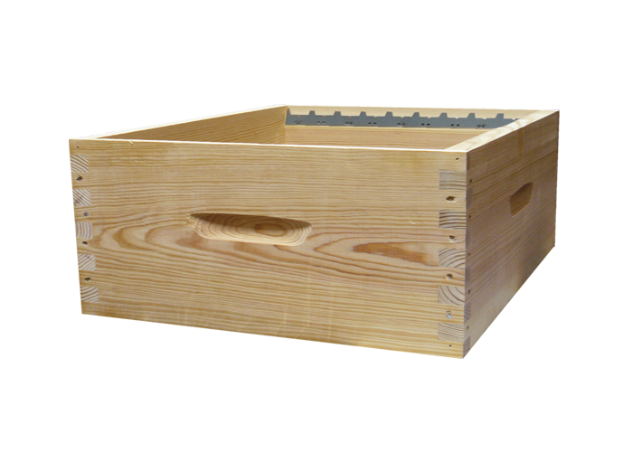 Notre standard aux finitions haut de gamme. Hausse Dadant pour 10 cadres droits en pin maritime robuste et très peu noueux.