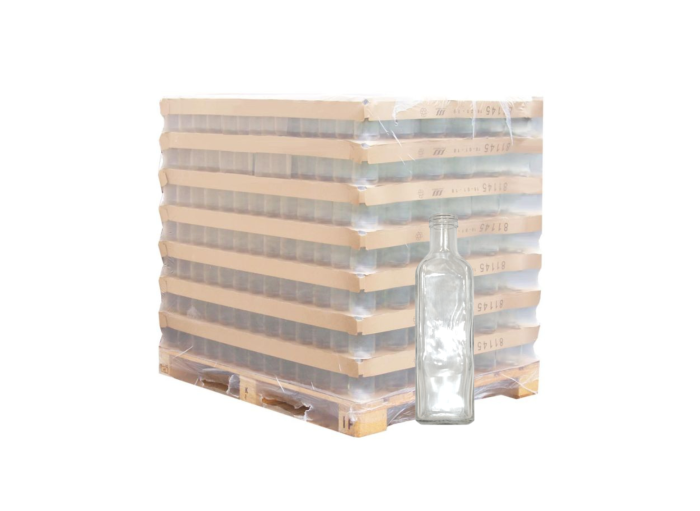 Palette de 2100 bouteilles en verre 250 ml, modèle Marasca à section carrée, avec col fileté BVP31.5. Ce format compact est idéal pour l’huile d’olive, vinaigre ou autres liquides alimentaires. Son design carré facilite le stockage, le transport et l’étiquetage, tout en offrant une présentation élégante et professionnelle.
