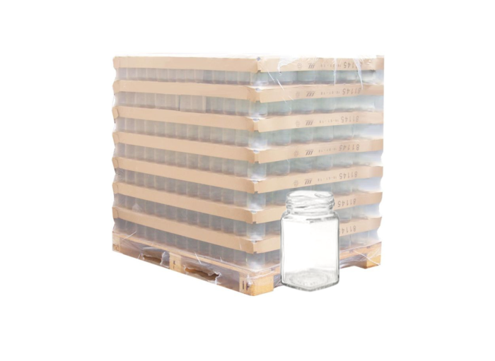 Palette de pots en verre 116 ml, forme hexagonale, compatible avec capsules TO48. Ce petit format à facettes est idéal pour les miels, condiments ou échantillons. Son design original à six pans facilite la prise en main et ajoute une touche artisanale à vos produits. Parfait pour les producteurs souhaitant allier esthétisme et praticité. La palette de 5544 pots demiel en verre.