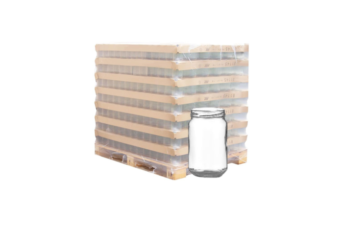 Palette de 2176 pots en verre 300 ml, format standard, compatible avec capsules TO63. Ce pot est adapté au conditionnement de produits alimentaires variés : miels, confitures ou autres. Sa forme droite classique facilite le remplissage et l'empilage. Pot solide et pratique, destiné à un usage professionnel ou artisanal.