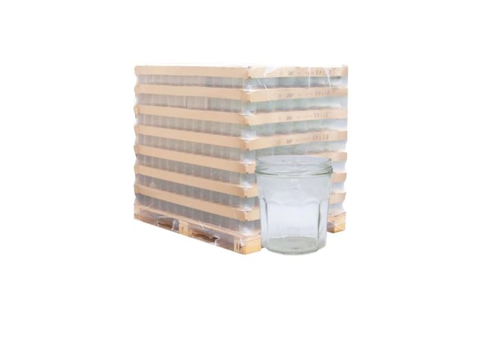 Modèle Ménage à 12 côtes, la palette de 1960 pots en verre 324 ml TO82. Sa forme facettée offre une excellente prise en main, idéal pour l'emballage de miels, confitures ou autres produits artisanaux. Ce pot allie robustesse, stabilité et met en valeur le côté artisanal de vos productions.