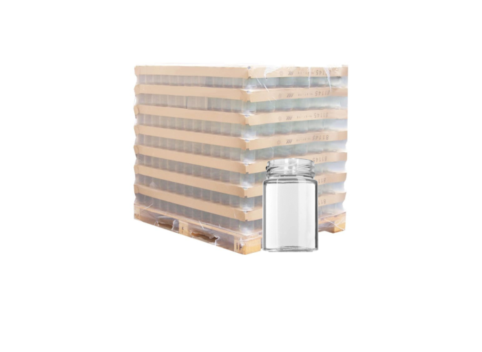 Palette de pots en verre 370 ml, modèle Jupe Haute (Deep), compatible avec capsules TO70. Ce pot se distingue par sa hauteur et sa silhouette élancée, idéale pour une présentation soignée de miels ou autres préparations artisanales. Son format profond permet un étiquetage vertical étendu. Vendu par palette de 1674 pots de verre.