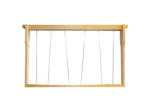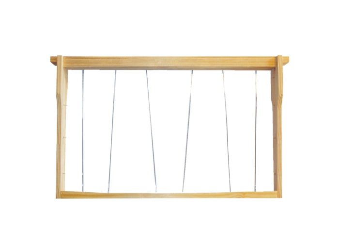 Cadre Dadant en pin maritime filé à l'oblique en fil inox, bisauté, spécialement conçu pour l'utilisation en ruches à bandes lisses.