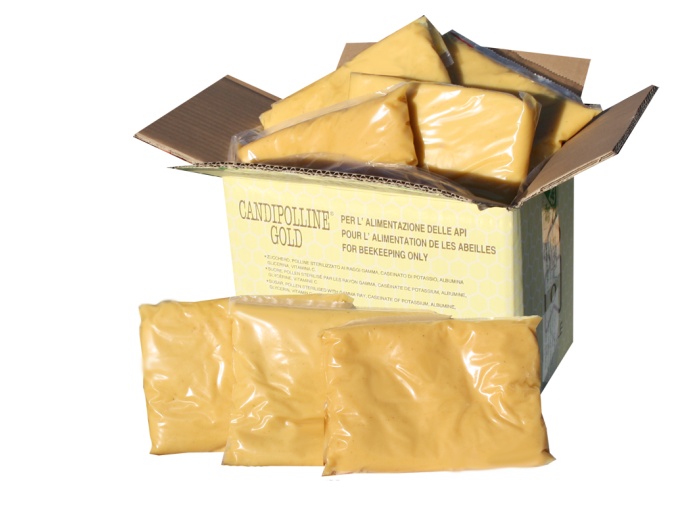 Le candi gold enrichi en pollen, sucres et protéines est un pain de pollen idéal pour stimuler votre colonie lorsque que le temps est capricieux et que les ressources pour l'abeille se font rare. Cette pâte de nourrissement favorisera le développement du couvain, la productivité printanière et une meilleure résistance contre les maladies.