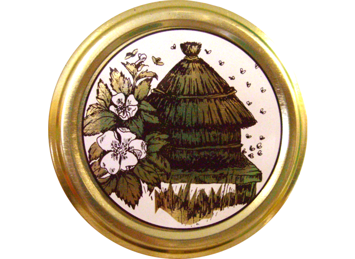 <p>Capsules ruche paille dorée dans <strong>un jardin fleuri sur fond crème,</strong> le tout cerclé de doré.</p>