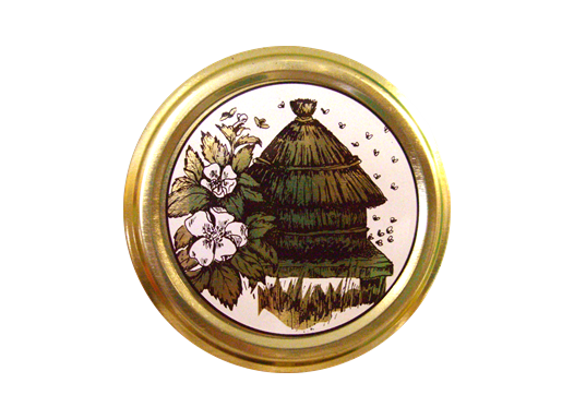 Capsules ruche paille sur fond crème, cerclées de doré, très élégantes pour vos pots de miel.