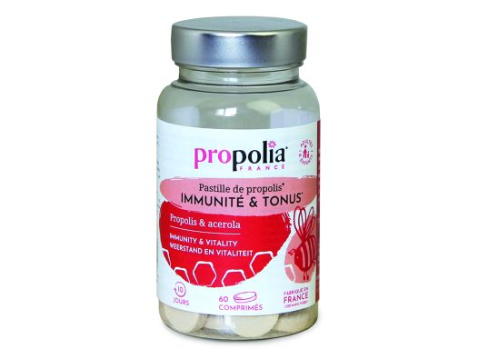 Étudiés pour une action combinée en faveur du tonus, les pastilles de Propolis® "Immunité & Tonus" vous font profiter de toutes les qualités de la propolis, tandis que l'acérola vous apporte la Vitamine C contribuant au bon fonctionnement du système immunitaire et à la réduction de la fatigue.