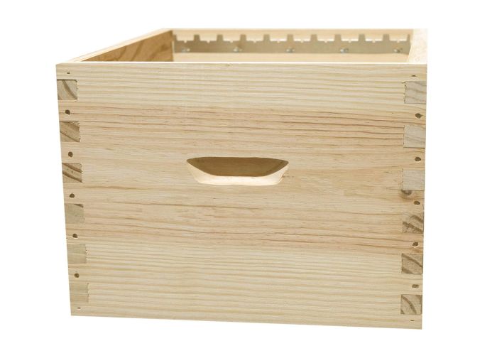 Notrestandard aux finitions haut de gamme. Corps de ruche Dadant 10 en pin maritime robuste et très peu noueux. Assemblage à tenons, vendu monté.