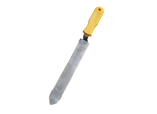 Couteau à désoperculer en inox dent. Lame de 27 cm réaffutable, manche en matière plastique alimentaire.