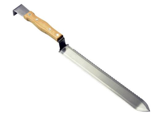 Couteau à désoperculer avec lame inox de 28cm .La lame est mixte, avec un côté denté et un autre lisse.