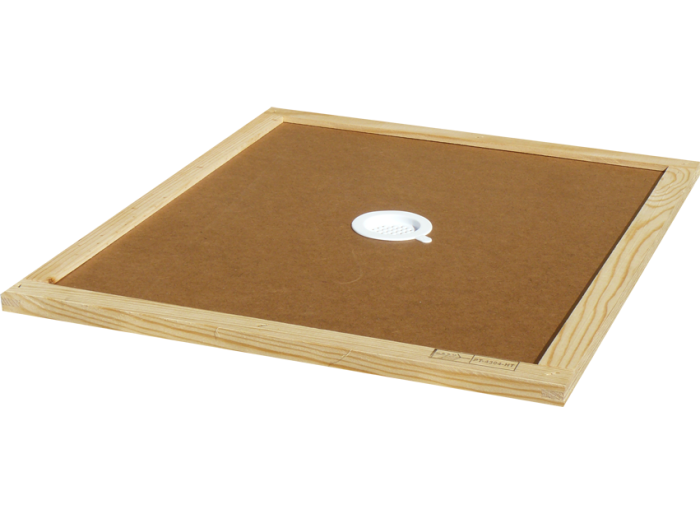 Ce couvre cadre en isorel, percé (avec bouchon aéré) est encadré en pin et vous permet de créer un espace sur le haut de vos cadres pour une meilleure circulation des abeilles.