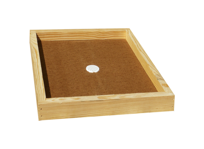 Couvre-cadres en isorel avec un encadrement de bois, avec une hauteur de 25 mm qui vous donne suffisamment de place pour un candi. Vous pourrez également placer un chasse-abeille peu de temps avant la récolte.