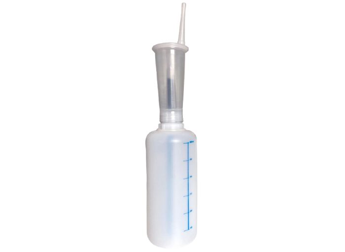 Une légère pression de la bouteille suffit pour amener le liquide dans le verre gradué dans la quantité exacte souhaitée.