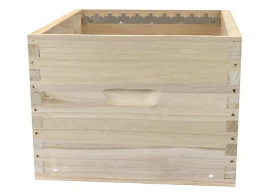 Corps de ruche Dadant 10 en paulownia Greenbee, extra-light, équipé de crémaillères pour 10 cadres droits. Très léger, 4 kilos seulement, sans noeud ni risque de déformation, ce corps de ruche équipera votre rucher pour de longues années. Ce corps de ruche est équipé de notre système exclusif Clic&Lock, deux aimants encastrés qui permettent de fixer en un clic les entrées métalliques.