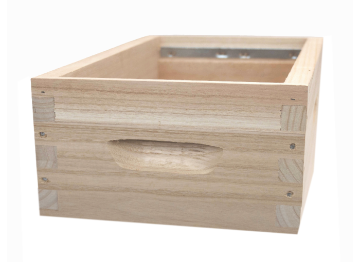 Haussette au format Dadant 6, en bois de Paulownia extralight, équipée de bandes lisses pour cadres Hoffmann.