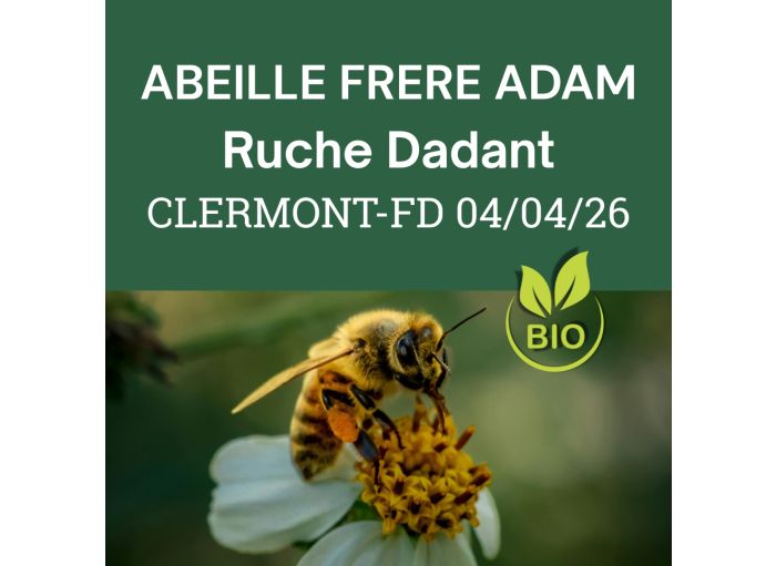 <p><span style="color: rgb(0, 0, 0);">Essaim <strong>BIO</strong> hiverné (Reine 2025) sur 5 cadres Dadant droits, dans <u>ruchette Dadant 6 consignée (50€)</u>.</span><br><span style="color: rgb(0, 0, 0);">Reine Frère Adam, souche douce, bonne éleveuse avec un bon démarrage en début de saison, bonne gestion des réserves. Essaim sur 3 cadres de couvain + 1 cadre de réserve + 1 cadre de transition. <strong>Reine marquée en bleu pour 2025.</strong></span><br><span style="color: rgb(0, 0, 0);"><em>Origine France - Auvergne</em></span></p>