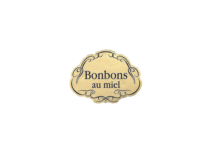 Étiquette traditionnelle pour vos sachets de bonbons au miel. Son côté rétro "art déco" habillera parfaitement vos paquets de bonbons et ne manquera pas de vous plaire ! Le doré de l'étiquette attire le regard, vous êtes sûr(e) retenir l'attention !