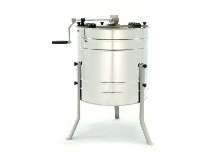 Extracteur radiaire manuel pour 20 cadres de hausse Dadant. Les dimensions de cet extracteur s’adaptent également à un format de cadres Warré, pour 12 cadres. Les extracteurs à miel radiaires ont la caractéristique de placer un grand nombre de cadres dans le panier de l’extracteur, idéal pour extraire un gros volume de miel en peu de temps. Basée sur la force centrifuge, la rotation de cet extracteur se fait dans un seul et même sens. Le tambour de cet extracteur, en acier inoxydable, présente une forte résistance. Doté d’un couvercle transparent en métaplex, il vous permet d’observer l’extraction du miel sans avoir à l’ouvrir.
