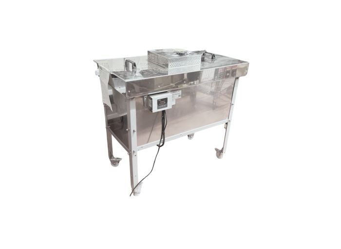 Ce fondoir multifonctions a été conçu pour plusieurs applications, dont la principale est la désoperculation du miel. Equipé d'un chevalet inox, le bac est réglable très facilement en largeur pour s'adapter à tous les types de cadres.