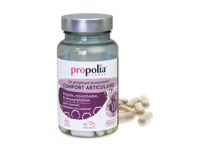 https://www.naturapi.com/gelules-confort-articulaire-propolis-cynorrhodon-et-harpagophytum-propolia-le-pot-de-90-gelules.html10622Gélules confort articulaire à la propolis, le pot de 90 géluleshttps://www.naturapi.com/media/catalog/product/p/r/propolia-gelules-articulation-pot-de-90-gelules.jpg19.2519.25EURInStock/Produits de la ruche/Apithérapie et Cosmétiques/Contre les petits maux142121564<p>Ces <strong>gélules conforts</strong> sont des <strong>compléments alimentaires</strong> prévenant les <strong>douleurs articulaires</strong> et réduisant les rhumatismes. Principalement composées d’une formule exclusive développée en France et riche en vitamine C, ces gélules associent les <strong>bienfaits de la propolis et du cynorrhodon</strong> pour maintenir la flexibilité de vos articulations.</p>