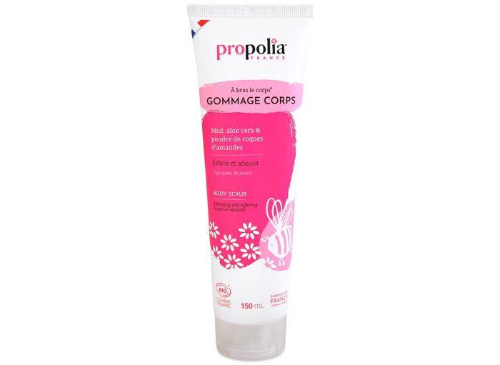 Gommage corps au miel, aloe vera, et poudre de coques d'amandes Propolia, le tube de 150ml