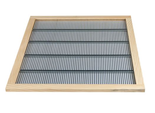 Empêchez votre reine de monter dans les cadres de hausses pour pondre grâce à une grille à reine que vous placerez entre le corps et la hausse. L’espacement du grillage permettra tout de même à vos ouvrières de circuler.