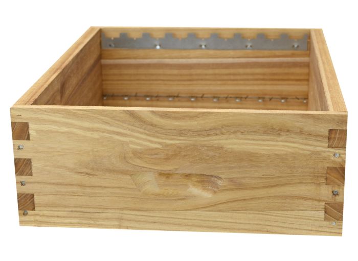 Hausse de ruche Greenbee au format Dadant 10, en bois de Paulownia extra-light, équipée de crémaillères pour 9 cadres droits. Très légère, 2,5 kilos seulement, sans noeud ni risque de déformation, cette hausse equipera votre rucher pour de longues années, miellées après miellées. Trempée à l'huile de lin, cette hausse est prête à rucher !