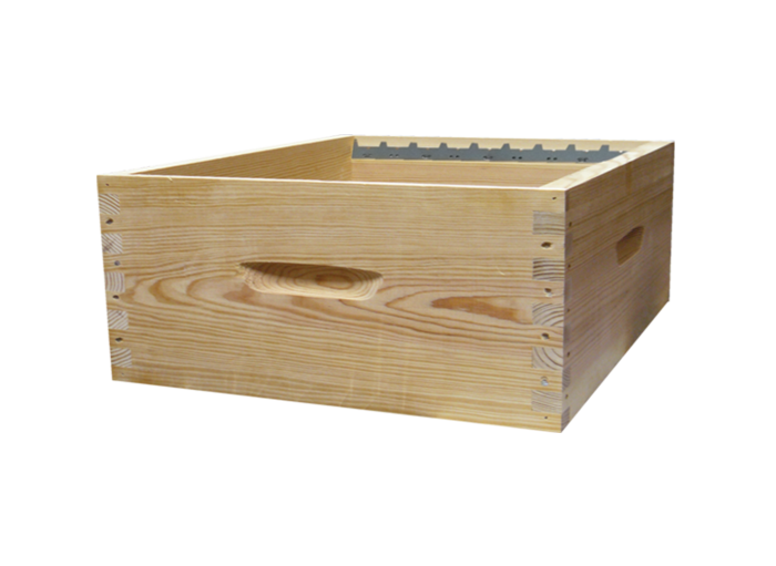 Notre standard aux finitions haut de gamme. Hausse Dadant pour 9 cadres droits en pin maritime robuste et très peu noueux.