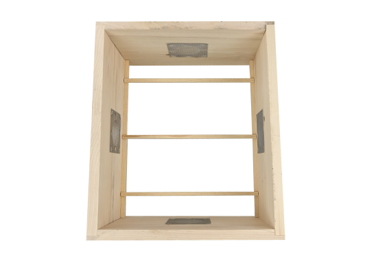 Parfaitement adaptable aux ruches Dadant 10 cadres, le couvre-cadres recouvert d’une moustiquaire offre la possibilité aux abeilles de réguler la ventilation au sein de la ruche en propolisant ou non la moustiquaire.
