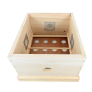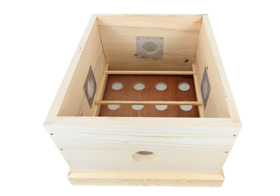 Kit de démarrage Ventilaruche comprenant 1 hausse de ventilation et 1 couvre-cadres aéré. Solivage intérieur pour la pose d’un coussin si besoin. Les orifices de ventilation sont grillagés. Possibilité de nourrissage liquide avec nourrisseur de type Lhoro. Parfaitement adaptable à toutes les ruches en bois Dadant 10 cadres sans changer votre toit. Non traité.