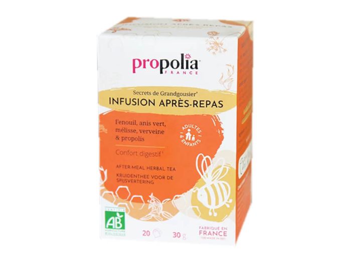 Infusion Après-repas, propolis et plantes, la boite de 20 sachets