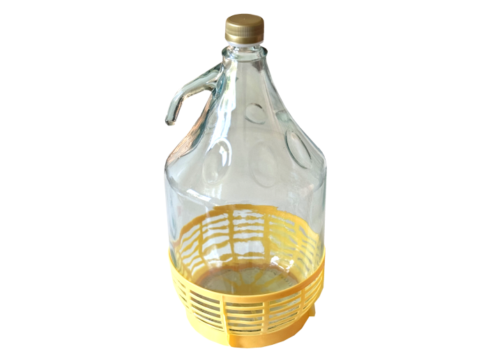 Cette jarre en verre à fond protégé par un panier en plastique est d'une cotenance de 5L. Elle peut accueillir vos préparations à base de miel comme les vinaigres, l'hydromel, l'hypocras, ou encore vos jus de fruits maison ou alcoolatures.