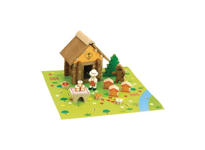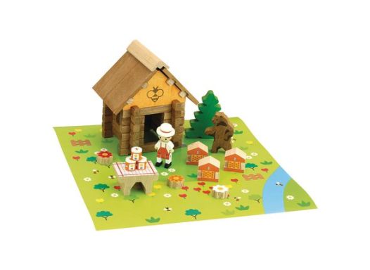 Construisez votre petite maison sur votre tapis de jeu, ajoutez le personnage de l'apiculteur, les ruches, les posts de miel et l'ours et inventez de belles histoires. Un petit univers authentique à construire pour se raconter des histoires qui plaira à tous les enfants !