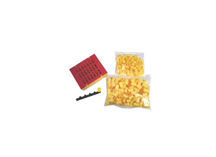 Les barrettes plastiques se placent dans une fente que l’on fait dans les barrettes d’élevage en bois classiques, les petits plots avec cuvettes contenant les larves sont alors coiffés d’une cupule percée.