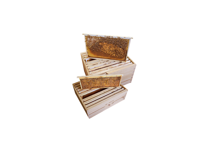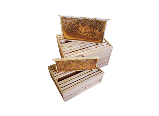 Série de 20 photos de cadres de corps et 18 photos de cadres de hausse. Des cartons plastifiés qui représentent exactement ce que l'apiculteur trouve en ouvrant un rucher: des photos de nids d'abeilles bien couverts.